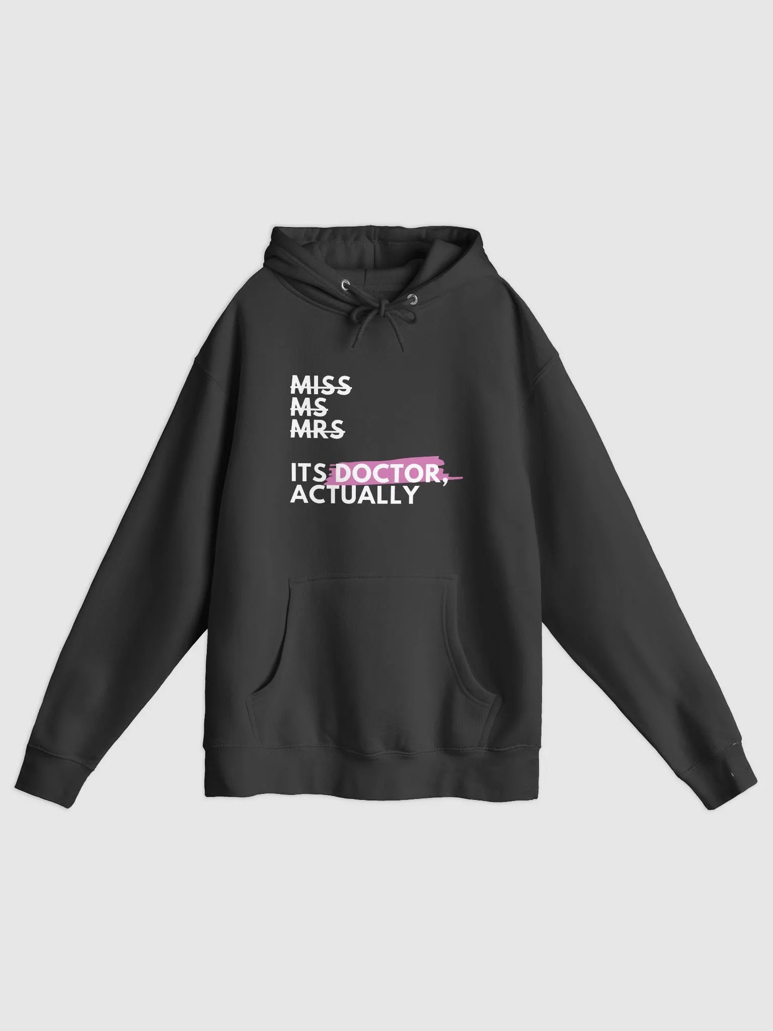 This hoodie serves as a powerful statement of identity, independence, and professionalism for individuals in the medical field who want to assert their status as a doctor while challenging traditional gender norms and titles. It's a perfect choice for anyone looking to convey a strong and confident message through their clothing while staying warm and comfortable in a hoodie style.
